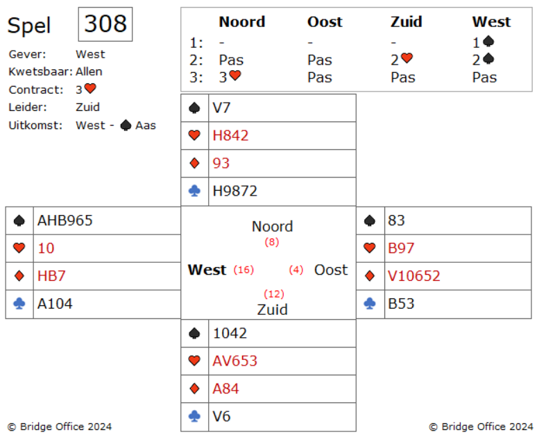 West moet een andere kleur spelen en dat zal vermoedelijk ruiten zijn.